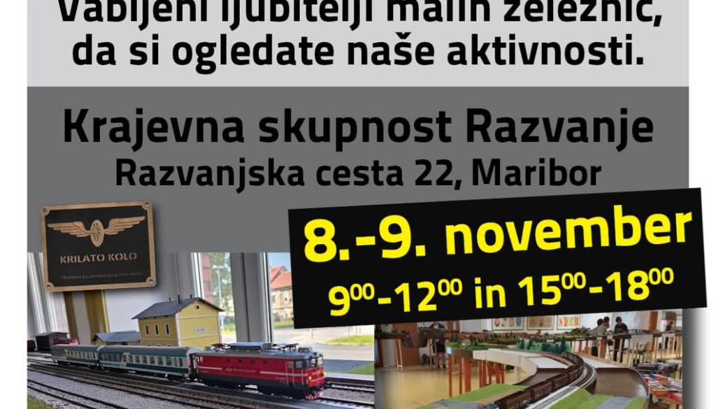KS RazvanjeV KS Razvanje, Razvanjska cesta 22 ima društvo Krilato Kolo predstavo oz. razstavo modelnih železnic. Dogodek se izvede v soboto 08.11.2025 in nedeljo 09.11.2025 med 9.00 in 12.00 in od 15.00 -18.00 ure.