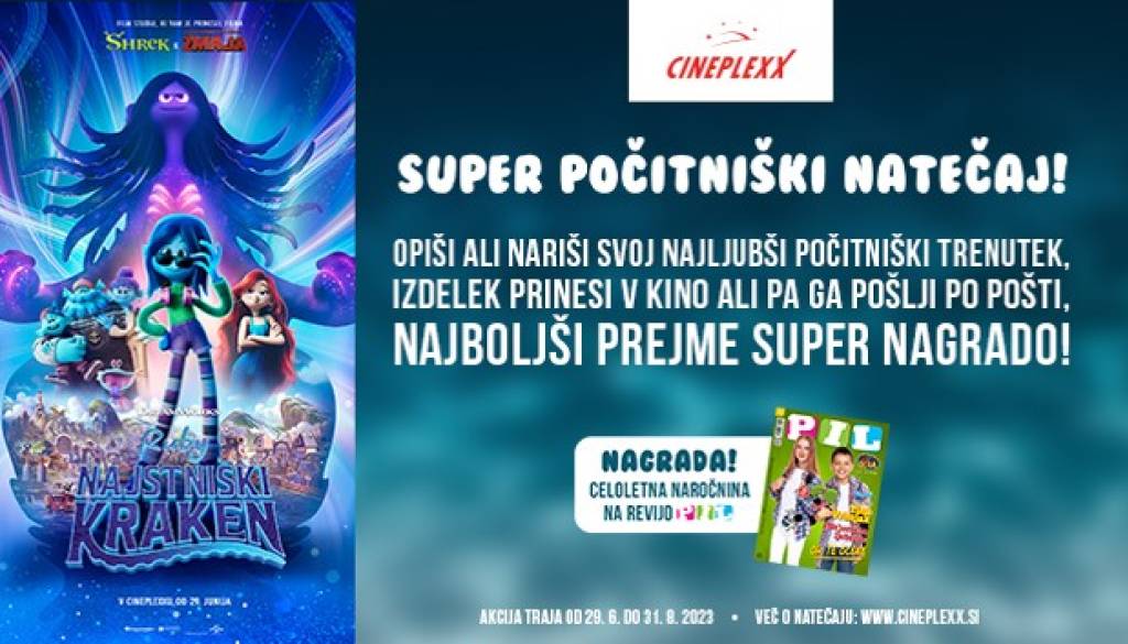 Nariši risbo svojega najljubšega počitniškega trenutka in jo od 29. junija do 31. avgusta 2023 prinesi v svoj najbližji Cineplexx. Pošlješ jo lahko tudi po pošti, na naslov Cineplexx.si d.o.o., Jurčkova 223, 1000 Ljubljana, s pripisom ''RUBY''.