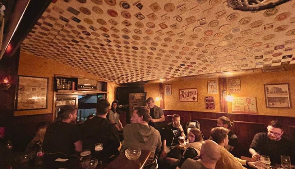 Lokacija: Gambrinus. Pub Gambrinus. Gledališka. Tam, kjer sta not dva grelca ob odprtih vratih. 🪑