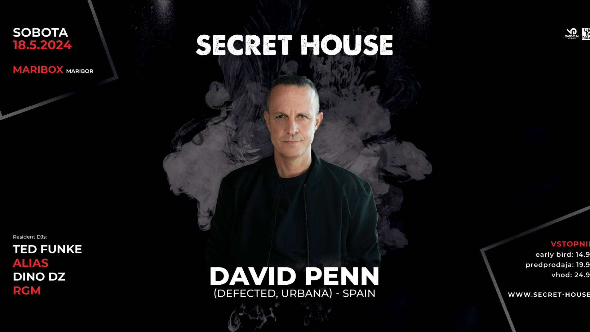 MARIBOX Loška ulica 13 2000 MariborHouserji širom Slovenije pozor! V Maribor, natančneje večji prostor bivšega kluba Plus/Minus (pod Mariboxom) 18.5.2024 prihaja legenda House glasbe David Penn v sklopu najbolj vročega House dogodka na štajerskem, Secret House!