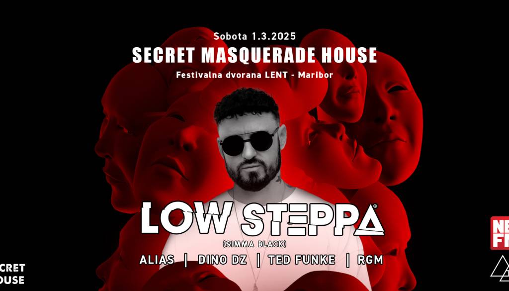 Loška ulica 13, MariborOboževalci House glasbe pozor! Prvič v Slovenijo prihaja legendarni House DJ Low Steppa na največji, pustno obarvani Secret House doslej in sicer v Festivalno dvorano Lent (Maribor), ki se bo 1.3. prelevila v pravcato klubsko prizorišče!