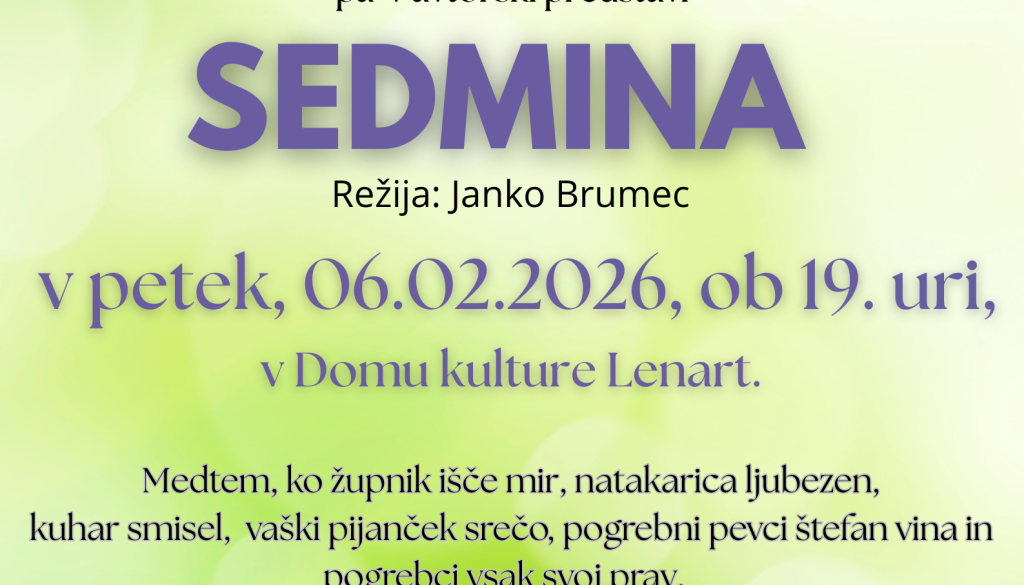 V PETEK, 6. FEBRUARJA 2026, OB 19.00 V DOMU KULTURE LENART