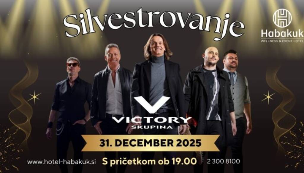 Hotel Habakuk vabi na silvestrovanje, ki povezuje eleganco večernega sprejema s sproščenim ritmom zabave. Za glasbeno vzdušje bo poskrbela priljubljena skupina Victory, ki bo z energičnim repertoarjem ustvarila večer, poln plesa, nasmehov in dobrega razpoloženja.