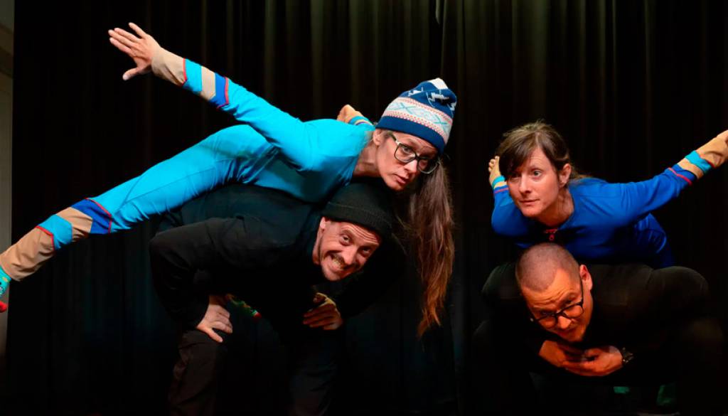 Predstava z interaktivnimi prijemi ter z glasbenimi vložki popelje občinstvo na pravo pravcato tekmo smučarskih skokov, kjer se spoznajo z različnimi skakalkami.