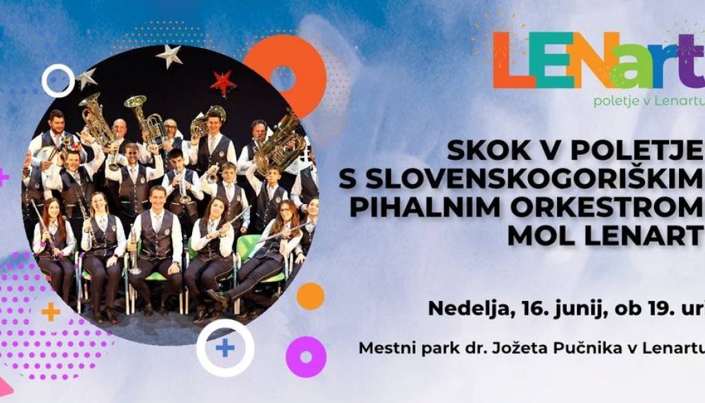 MESTNI PARK DR. JOŽETA PUČNIKA V LENARTUPridružite se nam na koncertu, kjer bodo zazvenele melodije poletja. Zazibali se bomo ob slovenskih zimzelenih melodijah, latinskih in pop ritmih, glasbi osemdesetih ter filmski glasbi. S seboj prinestite piknik odejo in uživajte ob glasbi.