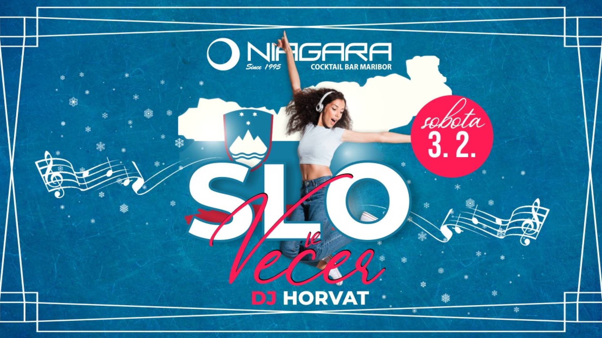 NIAGARA Lounge BarV soboto, 3. 2. se nam pridružite na Slovenskem večeru, kjer bo DJ Horvat zavrtel najboljše domače hite! Ta večer bo posvečen vsem ljubiteljem slovenske glasbe, ki cenite raznolikost in bogastvo naše glasbene dediščine.