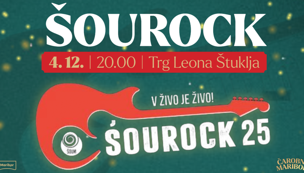 Pripravite se na odličen glasbeni večer, ko bodo 4. decembra ob 20.00 na Trgu Leona Štuklja nastopili ŠOUROCK – tradicionalni projekt mariborskih študentov, ki vsako leto predstavi svež val rock talentov. Na oder postavlja mlade zasedbe, ki ustvarjajo v razponu od alternativnega rocka, indie-ja, punka do udarnega hard rocka. Na odru ŠOUROCKA se pogosto predstavijo bendi, ki kasneje postanejo del širše slovenske rock scene.