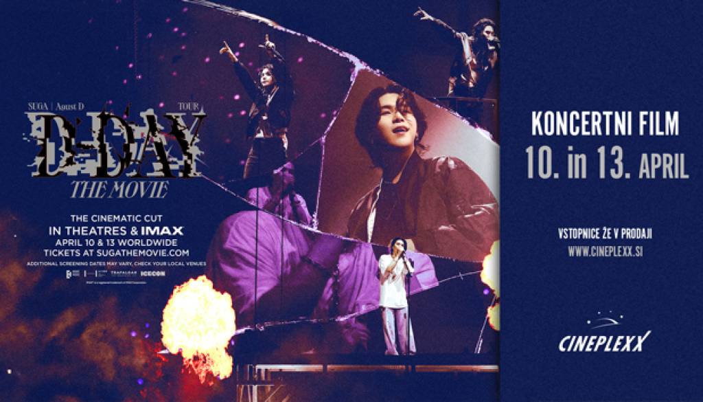 Cineplexx MariborTežko pričakovani film člana skupine BTS SUGA z njegovim zadnjim koncertom "SUGA│Agust D TOUR 'D-DAY' THE MOVIE" prihaja na velika platna!