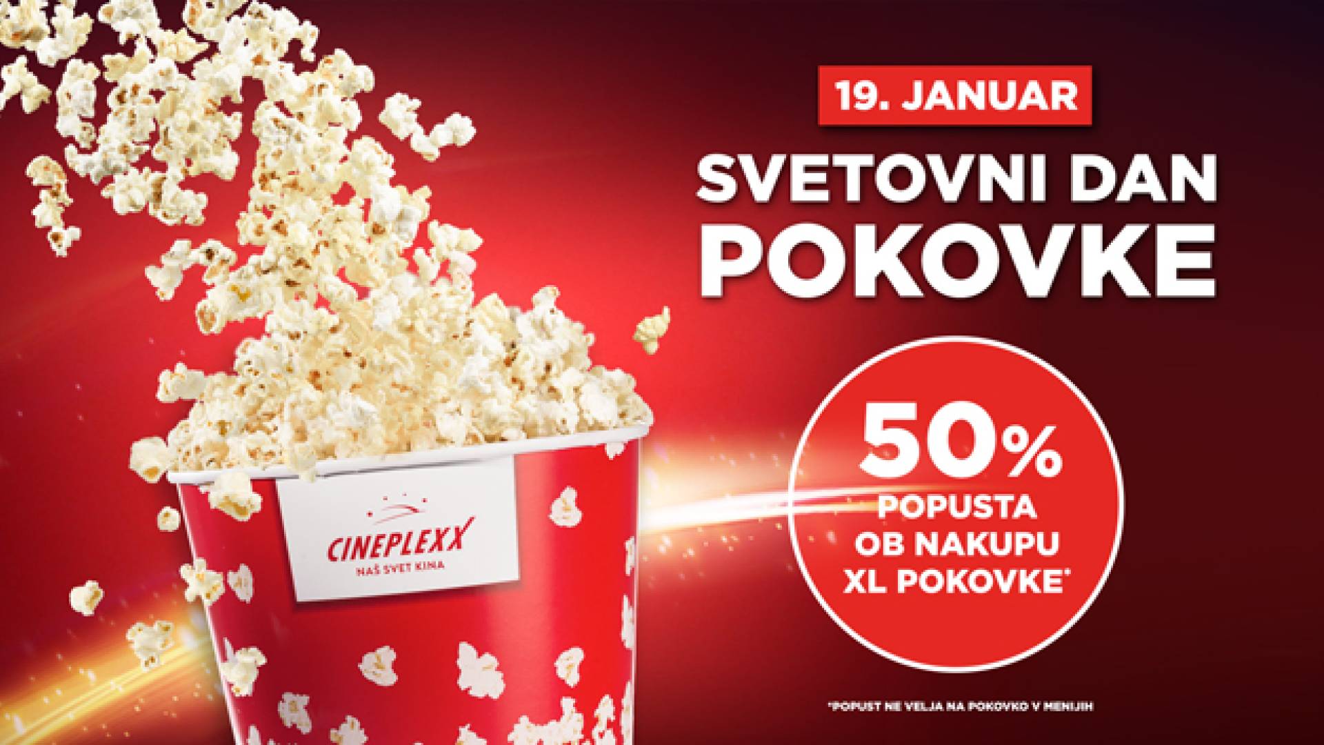 XL pokovka za samo polovično ceno! Samo v petek, 19. januarja na svetovni dan pokovke, imamo 50% popust za nakup XL pokovke* v vseh naših kinematografih!
