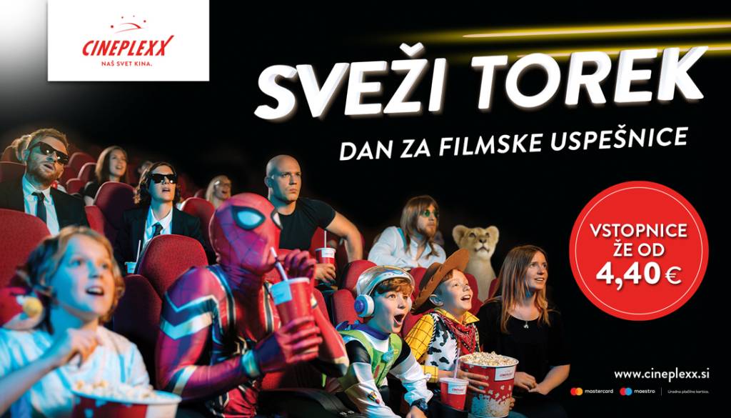 Cineplexx MariborTo poletje vas v Cineplexxu čaka pester filmski izbor. Ne zamudite svežih filmskih uspešnic vsak torek po posebno ugodni ceni. Vsak torek, med 2. julijem in 3. septembrom, cena kino vstopnice že od 4,40 Eur.