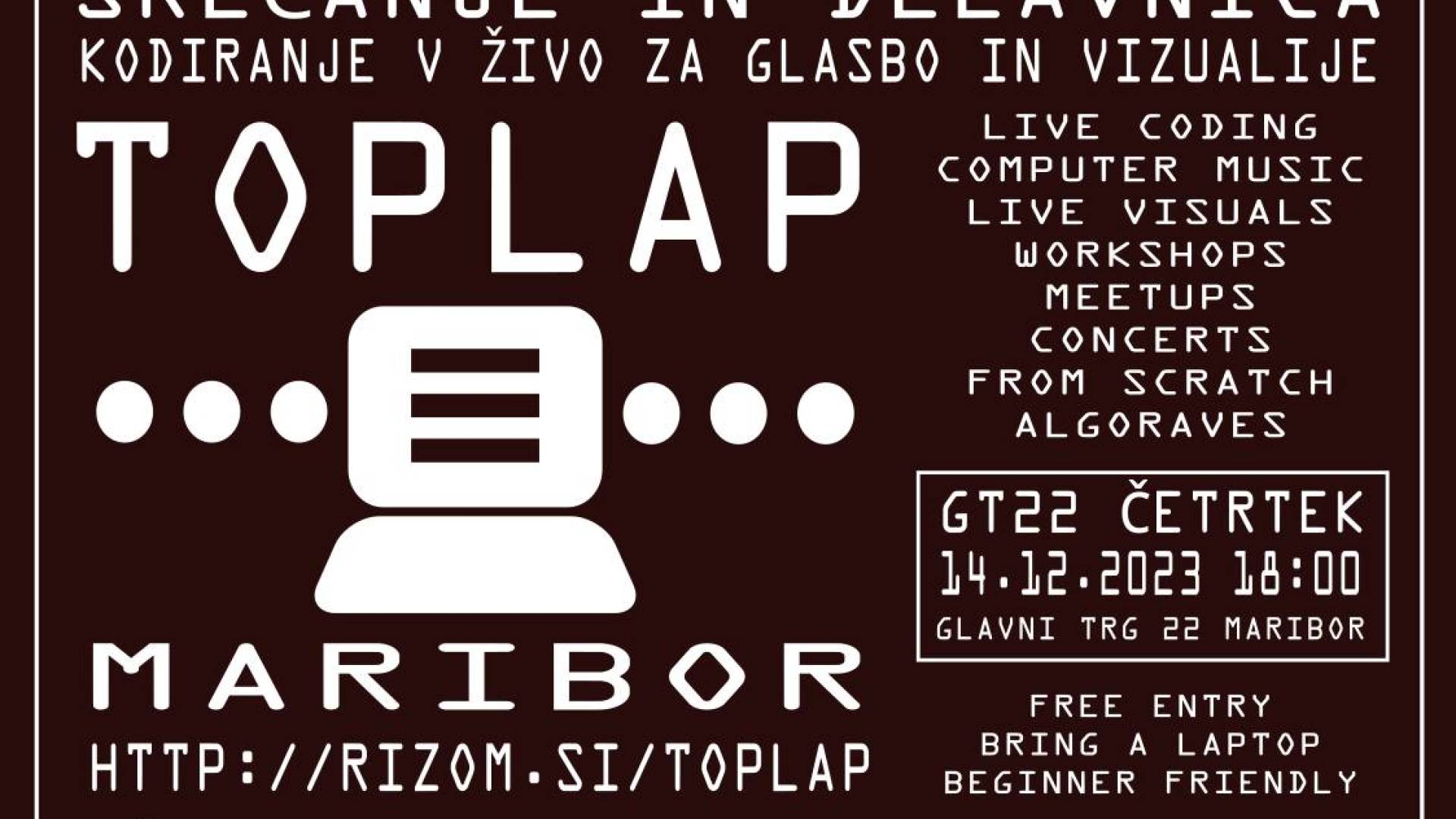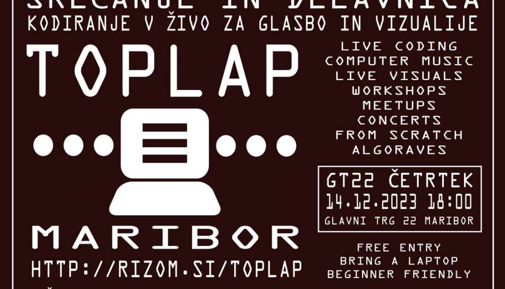 TOPLAP MARIBOR - SREČANJE IN DELAVNICA - KODIRANJE V ŽIVO ZA GLASBO IN VIZUALIJE
