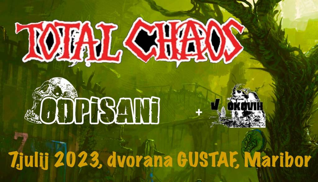 Dvorana Gustaf PekarnaPo štirih letih se legendarni ameriški punkerji TOTAL CHAOS in domači hardcorovci ODPISANI znova skupaj vračajo na oder mariborske dvorane Gustaf.