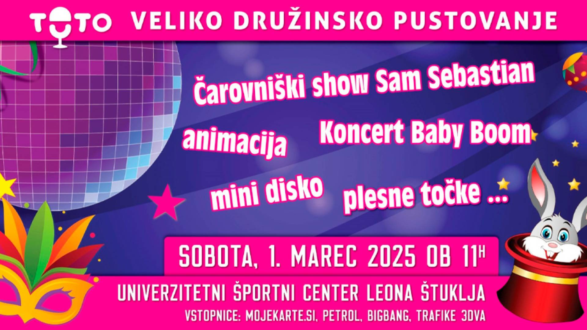 Po dooooolgih letih v Mariboru pustna sobota za male in velike otroke pod streho na toplem. Prvih 200 malih maškar, ki pridejo v dvorano, dobi brezplačen krof!