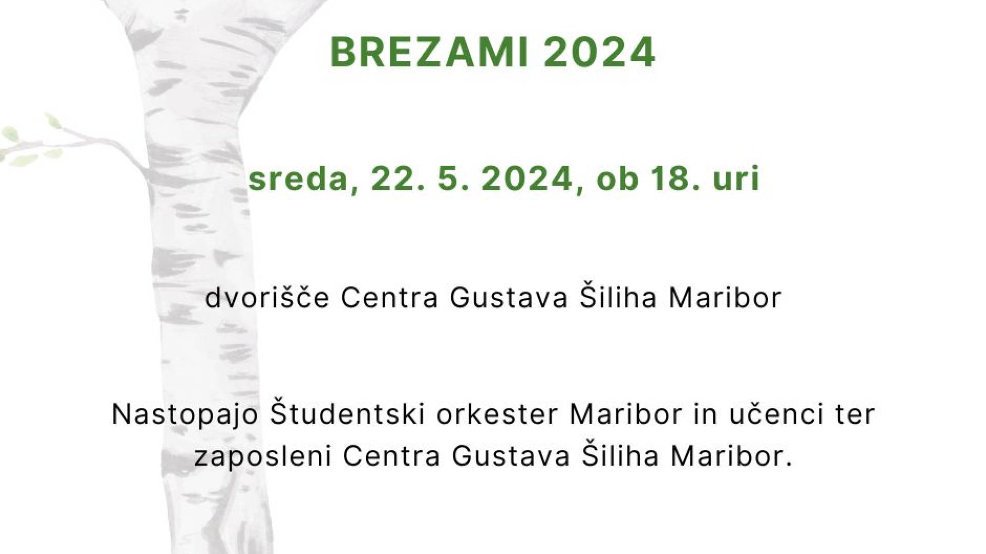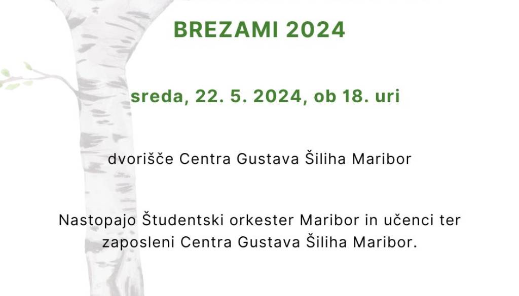 Majcigerjeva ulica 31, MariborCenter Gustava Šiliha pripravlja tradicionalni koncert pod brezami, ki bo v sredo, 22. 5. 2024, ob 18. uri, na šolskem igrišču. Nastopajo učenci in zaposleni Centra Gustava Šiliha Maribor ter študentski orkester Maribor.