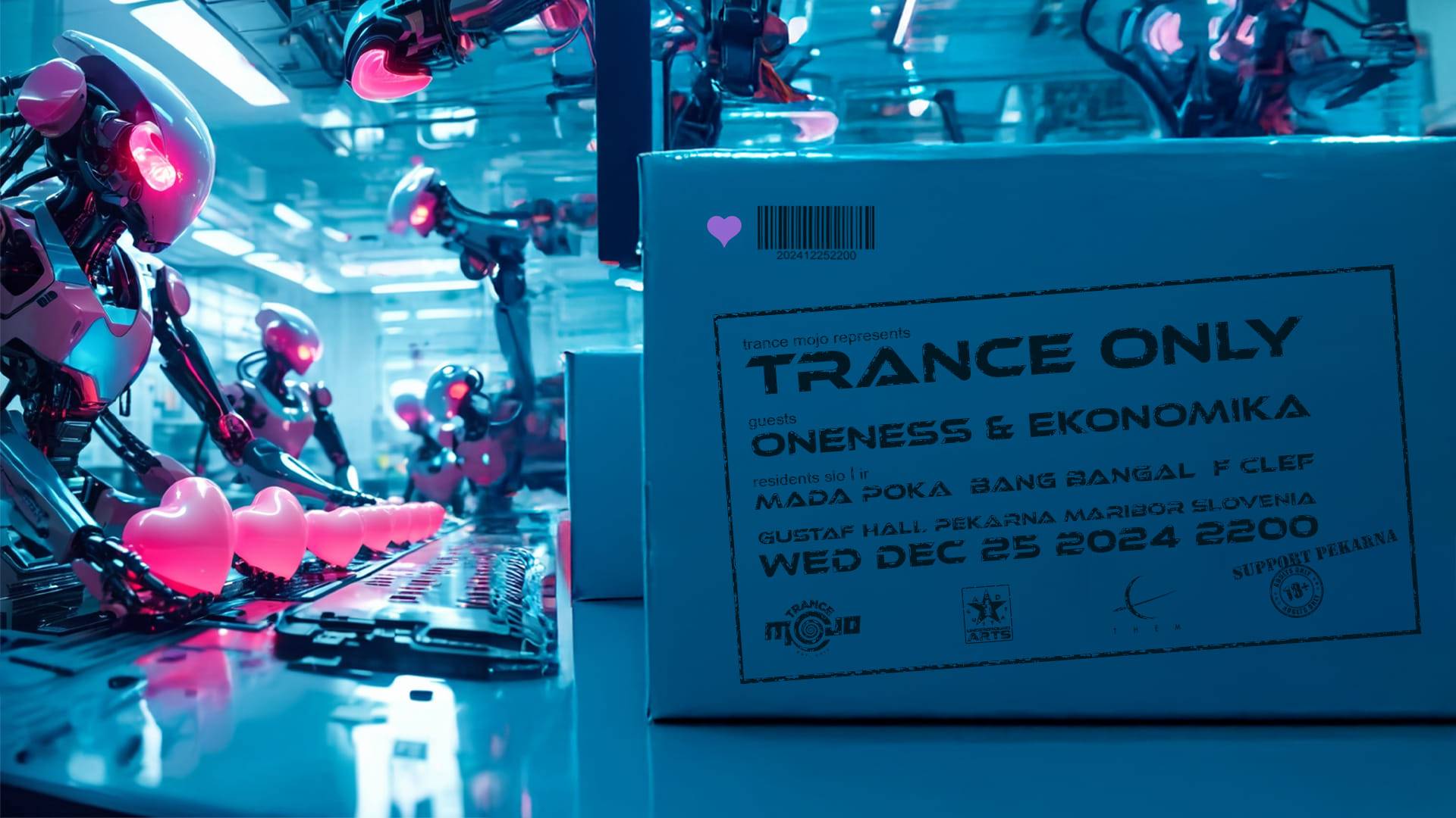 Dvorana Gustaf Pekarna Ob železnici 16 2000 MariborPribližuje se letošnji zadnji psy party v KC Pekarni. Zapakirali bomo pakete ljubezni in jih poslali naprej med naše drage, prav tako bomo prejeli pomembna sporočila iz vesolja, ki bodo zaznamovala naš vstop v 2025 💜