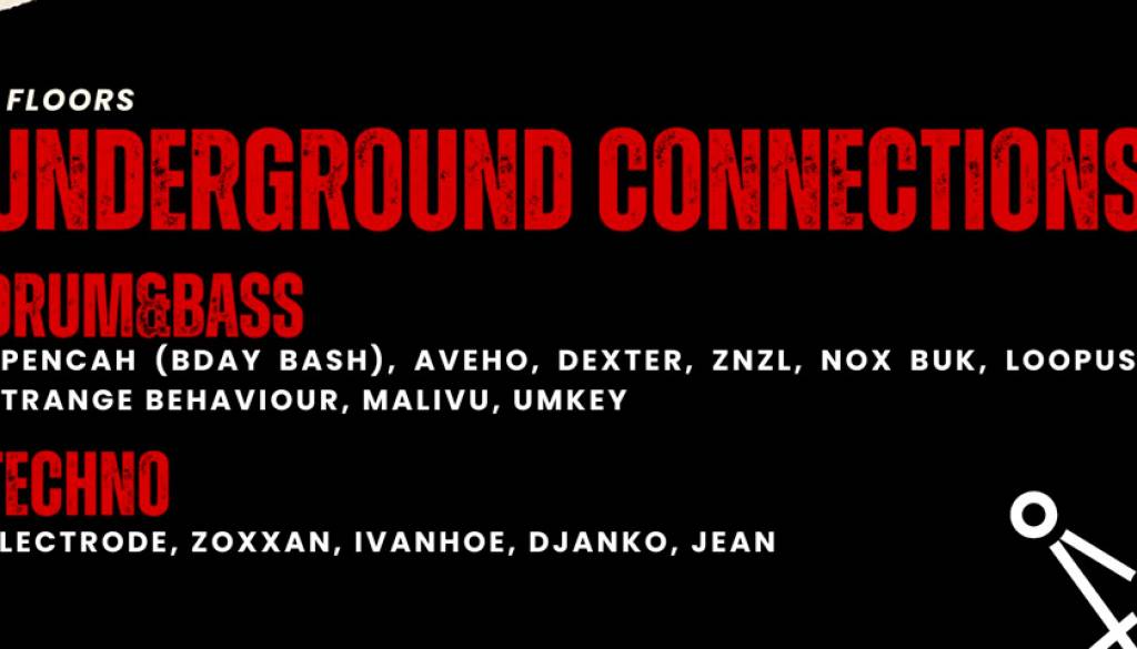 Podzemni rovi Eksperiment baraPodzemni rovi Eksperiment bara tokrat vodijo na Underground Connections, kjer se povezujemo podzemni rudarji Drum&Bassa in Tehna! ⛏️