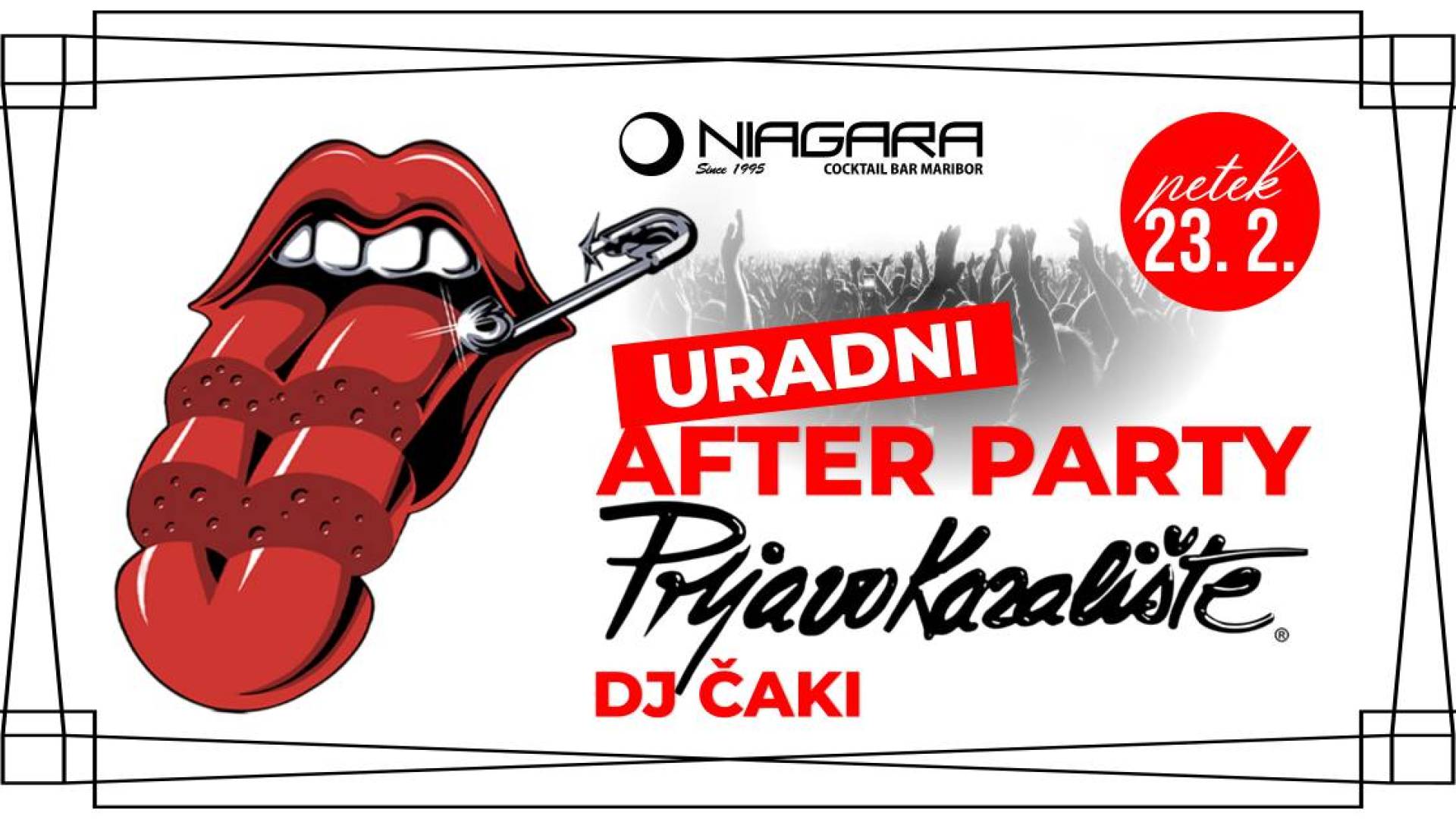 Ulica talcev 24, MariborTa petek, 23. februarja, se po koncertu skupine Prljavo Kazalište v Dvorani Tabor odvijal uradni After party v Niagari! Vrhunec večera bo glasbena selekcija DJ Čakija, ki bo vrtel največje hite Yugo pop rocka iz obdobja Jugoslavije.