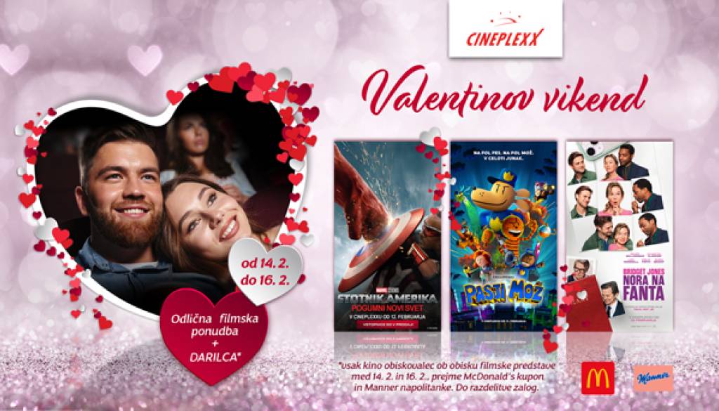 V kinu Cineplexx Maribor od 14. do 16. februarja 2025 poteka VALENTINOV VIKEND ❤️, ki ponuja pester filmski spored.