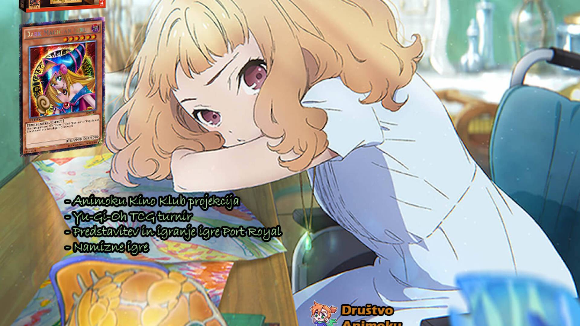 Na tokratnem dogodku si bomo v sklopu Animoku Kino Kluba, v katerega se lahko včlanite na družbenem omrežju Facebook, ponovno ogledali eno animejsko projekcijo, za navdušence nad igro s kartami Yu-Gi-Oh! bo ponovno potekal turnir, na katerega se je potrebno predhodno prijaviti (več informacij glede prijave še sledi), vsekakor pa bo poskrbljeno tudi za ljubitelje namiznih iger, saj bomo pobliže predstavili namiznico Port Royal. Vsekakor pa bodo na voljo številne druge namizne igre.