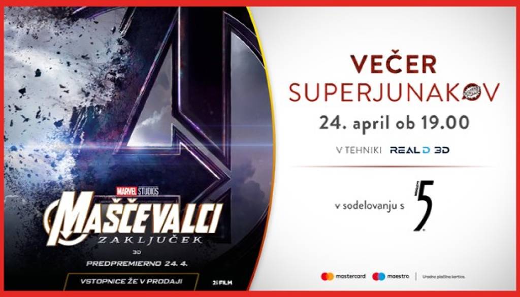 Ne zamudite Večera superjunakov s težko pričakovanim filmom Maščevalci: Zaključek, ki bo v sredo, 24. aprila ob 19.00! V 3D tehnologiji.