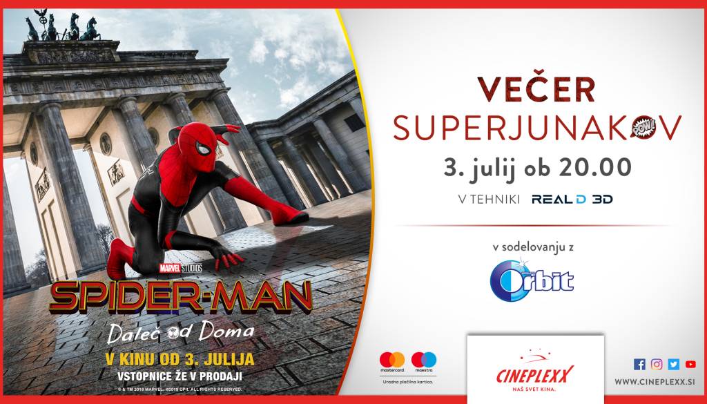 Ne zamudite filma SPIDER-MAN: DALEČ OD DOMA na Večeru superjunakov v sredo, 3. julija v Cineplexxu Maribor. Vstopnice so že v prodaji: https://bit.ly/2Wk8NSC