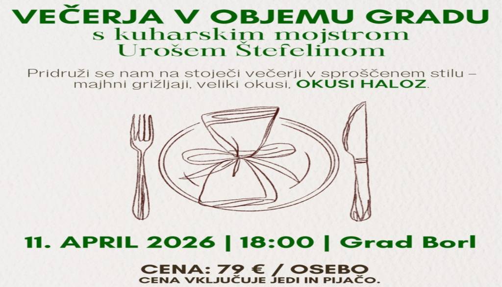 Grad Borl CirkulaneGrad Borl bo 11. aprila 2026 prizorišče posebnega gastronomskega večera, ki združuje več lokalnih ponudnikov haloškega področja pod eno streho – oziroma pod enim obokom zgodovinskega gradu. Haloze – pokrajina, kjer okus govori sam zase Haloze so najjužnejša gričevnata pokrajina v severovzhodni Sloveniji z izjemnimi pogoji za vinogradništvo – in kjer je dobro vino, so ponavadi tudi jedi, ki skupaj z njim sooblikujejo vsakdanjike in praznike tamkajšnjih prebivalcev. Kulinarika te pokrajine ni zgolj hrana – je živa dediščina, ki se prenaša iz roda v rod in odraža trud, iznajdljivost ter globoko navezanost na zemljo.
