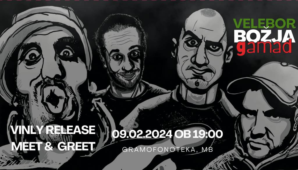 Tyrševa 7, MariborV petek proslavljamo release Božje Gamadi na vinilu! Izkoristi priložnost, da poleg vinila ujagaš še podpise Mriga, Gheta, Emkeja in Mita!
