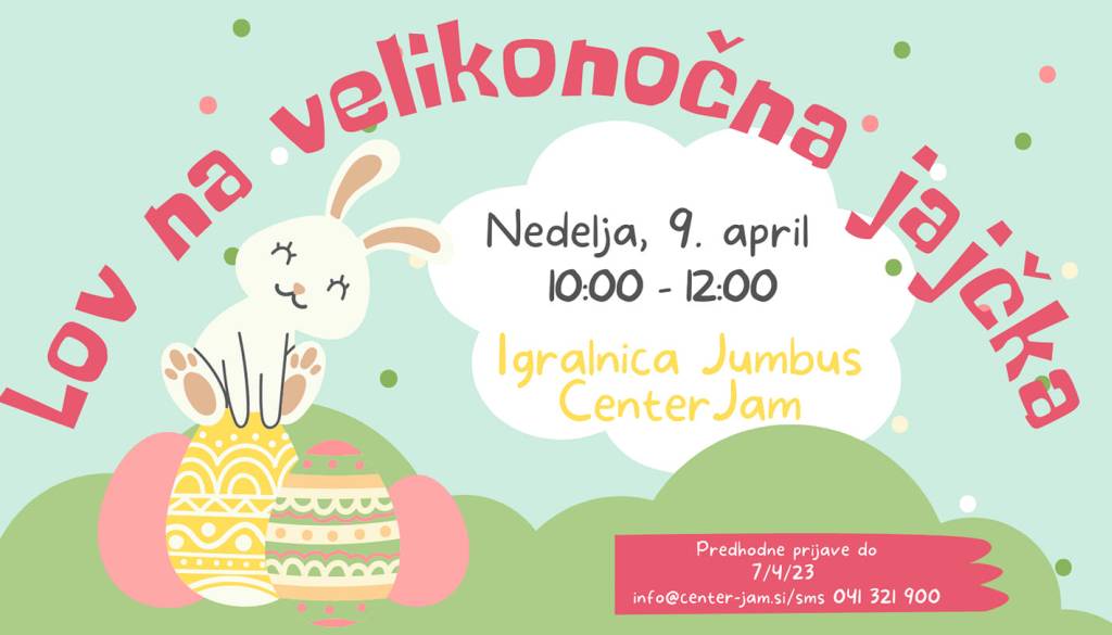 Plesno rekreacijski center JAM MariborPridruži se nam na zabavnem in poskočnem lovu na velikonočna jajčka presenečenja, ki nam jih je skril nagajivi zajček Rudi