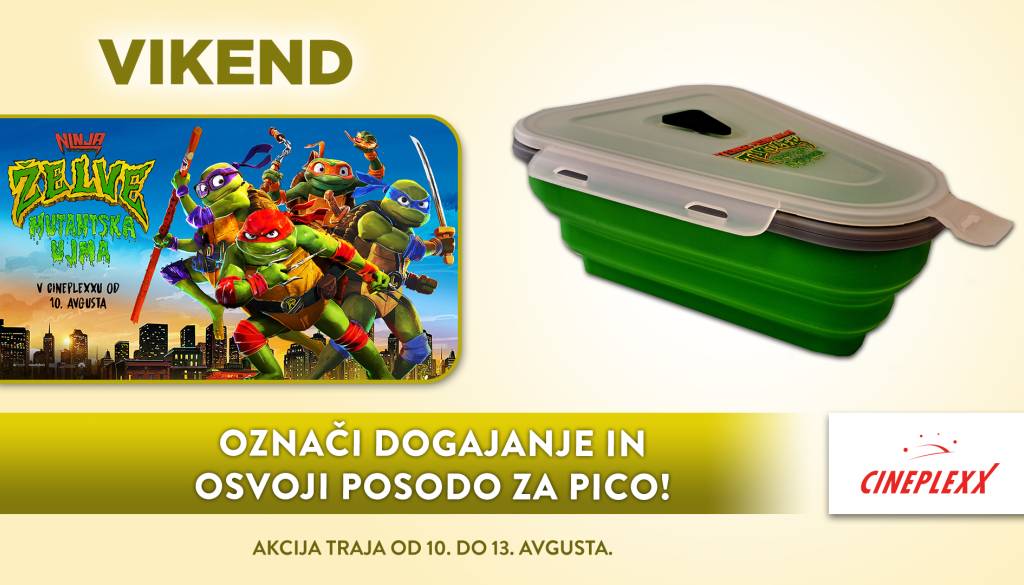Od 10. do 13. avgusta 2023 pridi v Cineplexx in si oglej film Ninja želve: Mutantska ujma, ujemi dogajanje v kinu, pred ali po filmu, fotko/video objavi na Instagram (story ali feed) ali pa jo prilepi v komentar pod objavo na Facebook! !