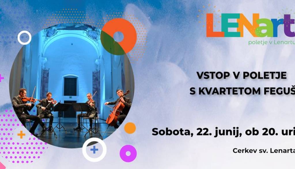 CERKEV SV. LENARTA V LENARTUGodalni kvartet Feguš je glasbeni fenomen, saj ga sestavljajo štirje bratje: violinista Filip in Simon Peter Feguš, violinist Andrej Feguš in violončelist Jernej Feguš. Prvič so javno nastopili leta 1992 in v tej zasedbi delujejo že 30 let.