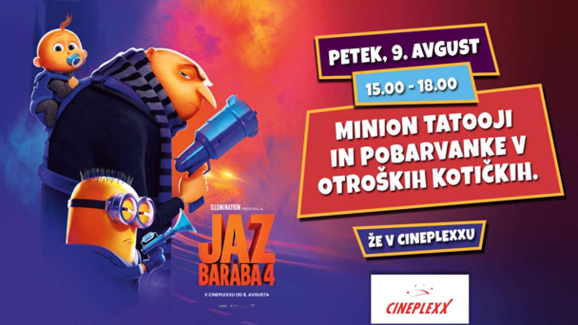 Cineplexx MariborV petek, 9. avgusta 2024, bo v Cineplexxu Maribor med 15:00 in 18:00 uro, poskrbljeno za zabavo v otroških kotičkih, kjer bomo zraven super pobarvank izdelovali še minion tattooje!