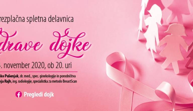 Spletni dogodekPridružite se nam na prvi spletni delavnici s strokovnjakoma: zdravnikom Stankom Pušenjakom, dr. med., spec. ginekologije in porodništva in Andrejo Rajh, ing. radiologije. V spletnem druženju boste izvedele kako skrbimo za zdravje naših dojk, na kaj moramo biti pozorne in kaj storiti, če imamo kakršne koli težave.
