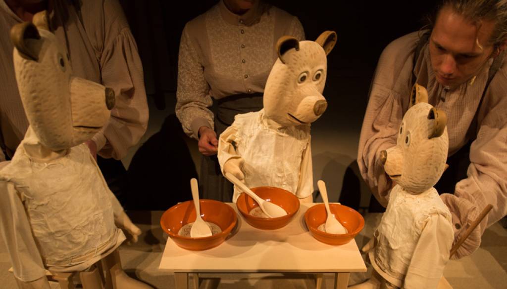 Lutkovno gledališče MariborZlatolaska je radovedna deklica, ki z odprtimi očmi občuduje svet, ki jo obdaja. Sončno jutro zazna v vsej njegovi lepoti in polnosti: opazi oblake, občuduje metulje in cvetje, pa tudi poskočni zajček ne uide njenemu pogledu. Steče za njim, vendar se ji ne pusti ujeti. Zlatolaska ga vneto išče v grmovju, za drevesi … in naenkrat se znajde globoko v gozdu. Izgubljena tava med drevjem in namesto potke, ki bi jo vodila domov, ugleda hišo na jasi. Vstopi, saj ne ve, da v njej prebivajo medvedi. V hiši je vsega po troje: tri sklede kaše, trije stoli, tri postelje … različnih velikosti. Zlatolaska poišče pravšen stolček, skledo in posteljo zase. Poje kašo iz najmanjše sklede, nehote polomi najmanjši stol, nato pa mirno zaspi v najmanjši postelji. Medvedi jo seveda najdejo in … varno pospremijo do doma.