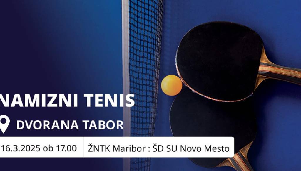 ŽNTK Maribor : ŠD SU Novo Mesto gregor1 | 12. marec 2025 11:57 v Šport Termin Nedelja, 16. marec 2025 17:00 Lokacija Dvorana Tabor Maribor ŽNTK Maribor : ŠD SU Novo Mesto 16.3.2025, 17:00 Dvorana tabor
