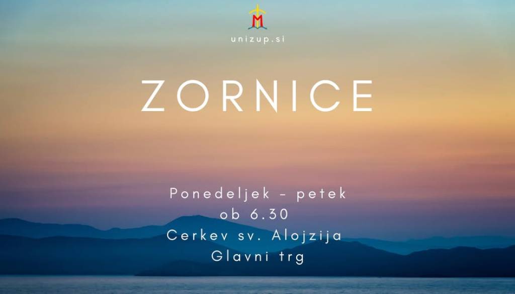Univerzitetna župnija v Mariboru vsak delovni dan vabi na zornice, ki bodo potekale ob 6:30 v Alojzijevi cerkvi na Glavnem trgu. To je priložnost, da v miru in tišini začnemo dan s skupno molitvijo in se tako skupaj pripravimo na prihod Njega, ki je luč.