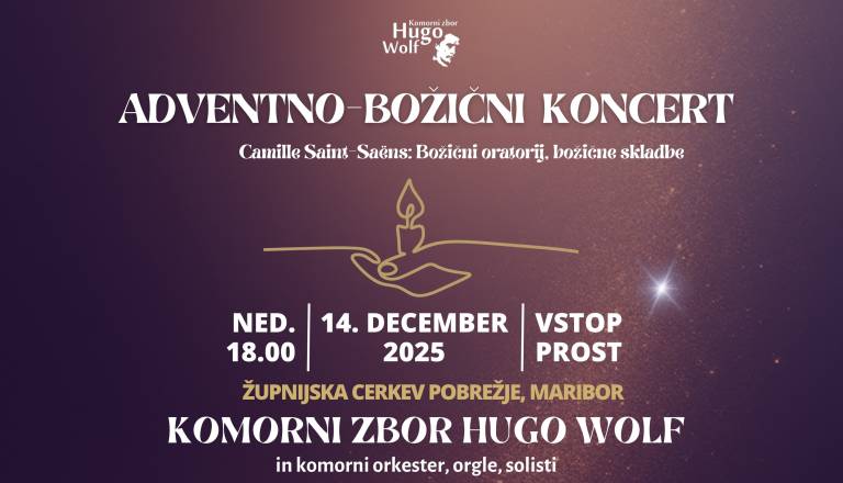 Komorni zbor Hugo Wolf vabi v nedeljo, 14. decembra 2025, ob 18.00 v Župnijsko cerkev Pobrežje v Mariboru na adventno-božični koncert. S komornim orkestrom ...