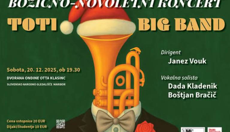Vljudno vas vabimo na tradicionalni letni koncert TOTEGA BIG BANDA MARIBOR. Letošnji koncert bo predpraznično obarvan. Big bandovske priredbe največjih božično ...