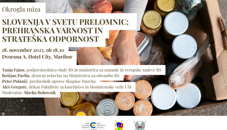 Center za evropsko prihodnost in Zveza slovenskih častnikov vabita na okroglo mizo z naslovom "Slovenija v svetu prelomnic: prehranska varnost in strateška ...