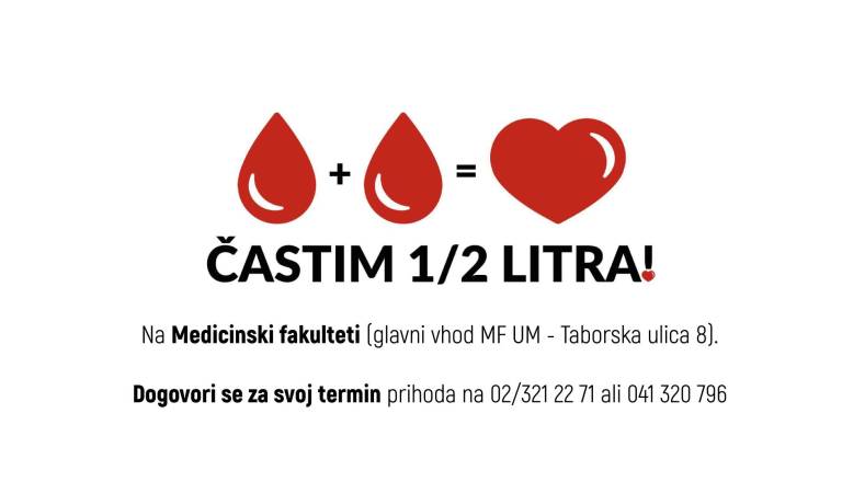 (ŠOUM) bo v sklopu »Študentskih krvodajalskih akcij«, ki potekajo po vseh Sloveniji, zopet izvedla krvodajalsko akcijo pod sloganom »Častim ½ litra!«. Pridruži ...