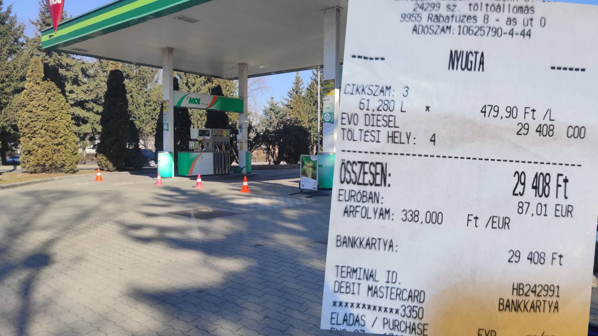 Za liter goriva je na MOL-ovi črpalki bilo treba odšteti 379,99 forinta.
