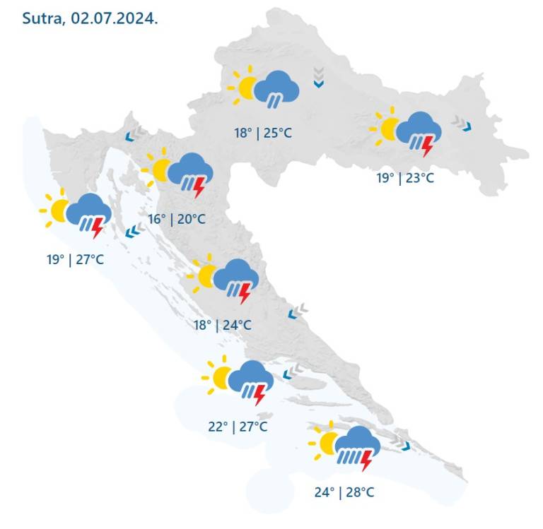 Tako kot pri nas tudi hrvaški vremenoslovci svarijo pred hudimi nevihtami.