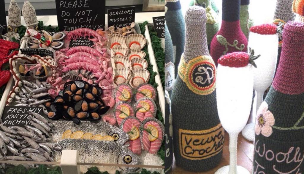 Oblikovalka pletenin Kate Jenkins je iskala nove načine, kako se izraziti skozi barve in tekstil. In tako je izdelala tako domiselne in realistične morske in druge jedi, da bi se lahko opazovalec prav hitro zmedel in zagrizel v kakšno od njih.