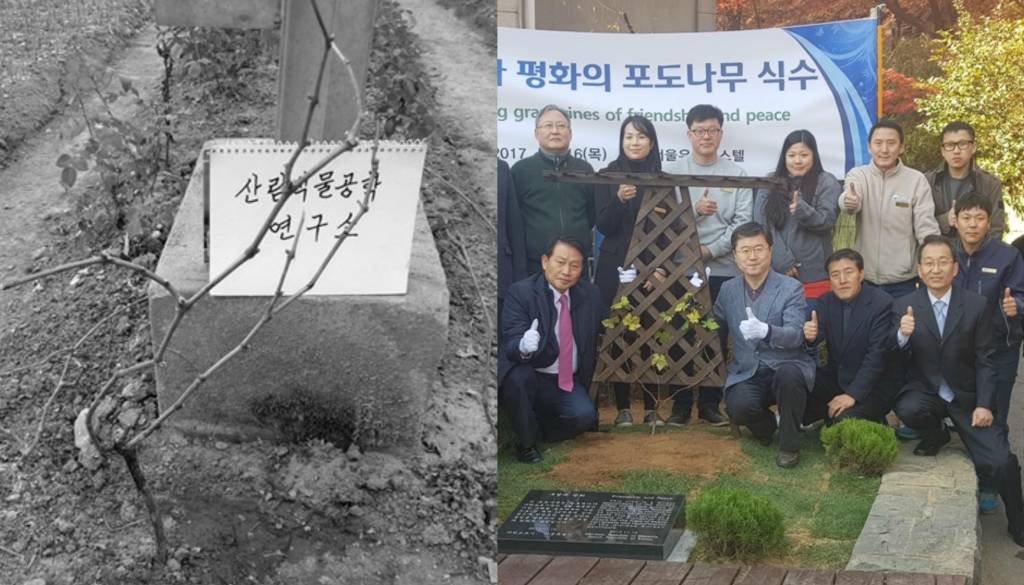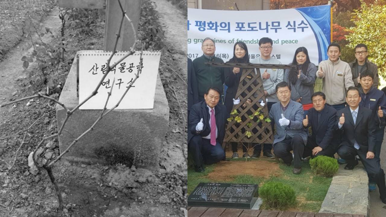 Iz Združenja slovensko-korejskega prijateljstva so sporočili, da sta se v Seulu in Pjongjangu uspešno prijeli lani zasajeni potomki najstarejše vinske trte na svetu.