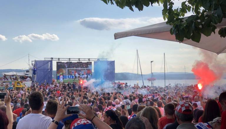 Ulice in trgi Zagreba so že drug dan polni navijačev, ki stiskajo pesti za domače nogometaše. Poleg vseh možnih izvedb rdeče-belih kock, veliko pogledov privablja tudi domačin, ki je ob včerajšnjem finalu na precej izviren način ponudil odojka.