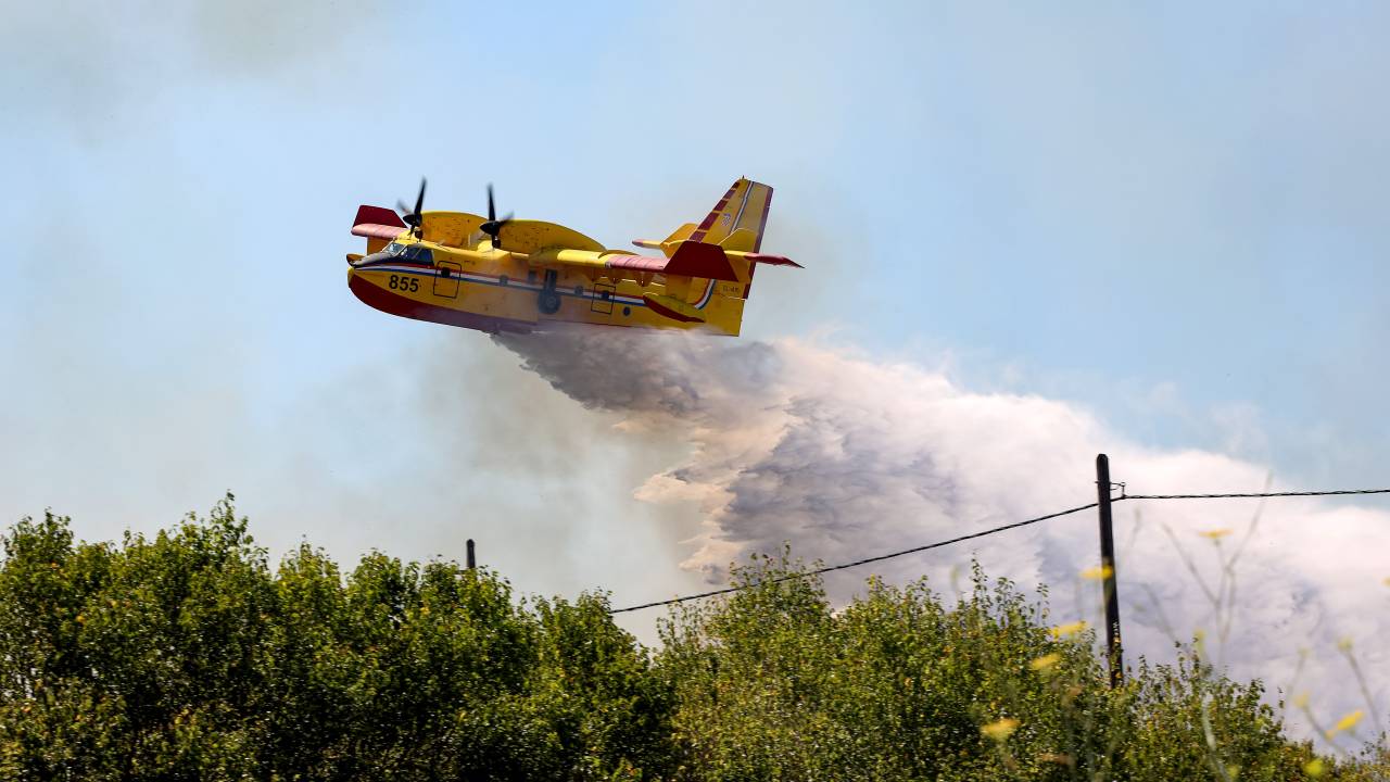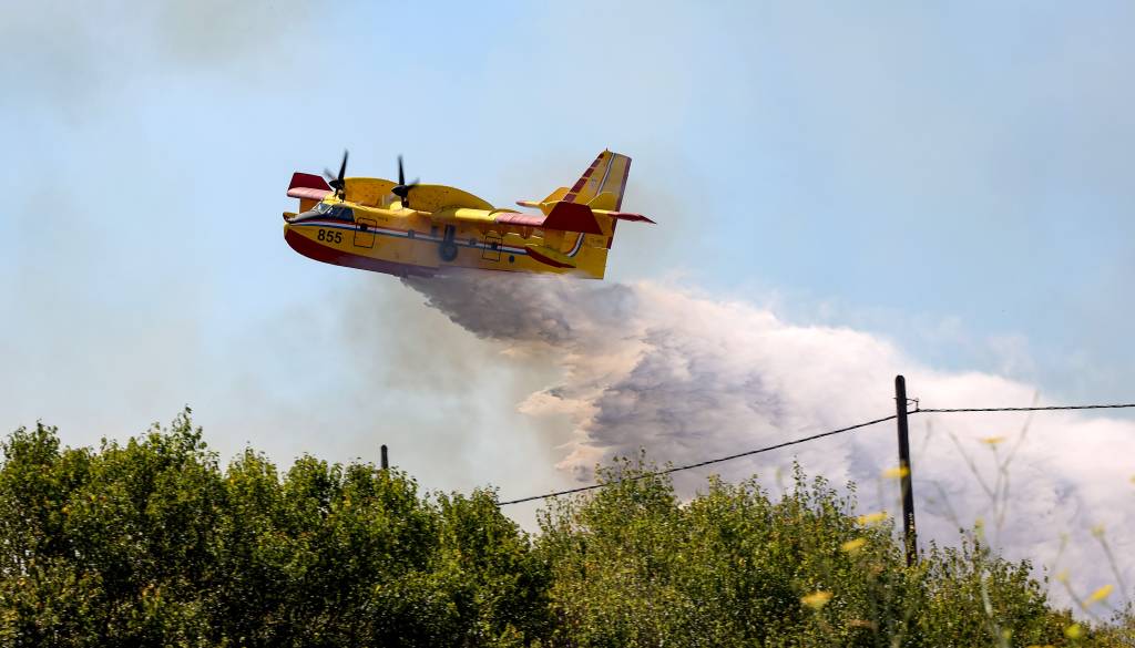 Že dopoldne je pri Šibeniku izbruhnil velik požar. Zajel je travo, nizko rastlinje in borov gozd.