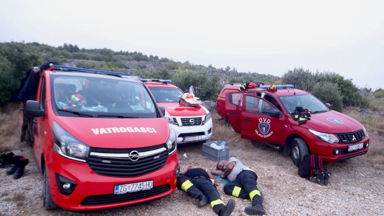 Hrvaški gasilci se v Dalmaciji že četrti dan spopadajo z obsežnimi požari. Na terenu je več sto gasilcev iz celotne Dalmacije, pa tudi iz notranjosti države, ki se spopadajo s požarom v Tučepih pri Makarski in požarom pri Trogirju.