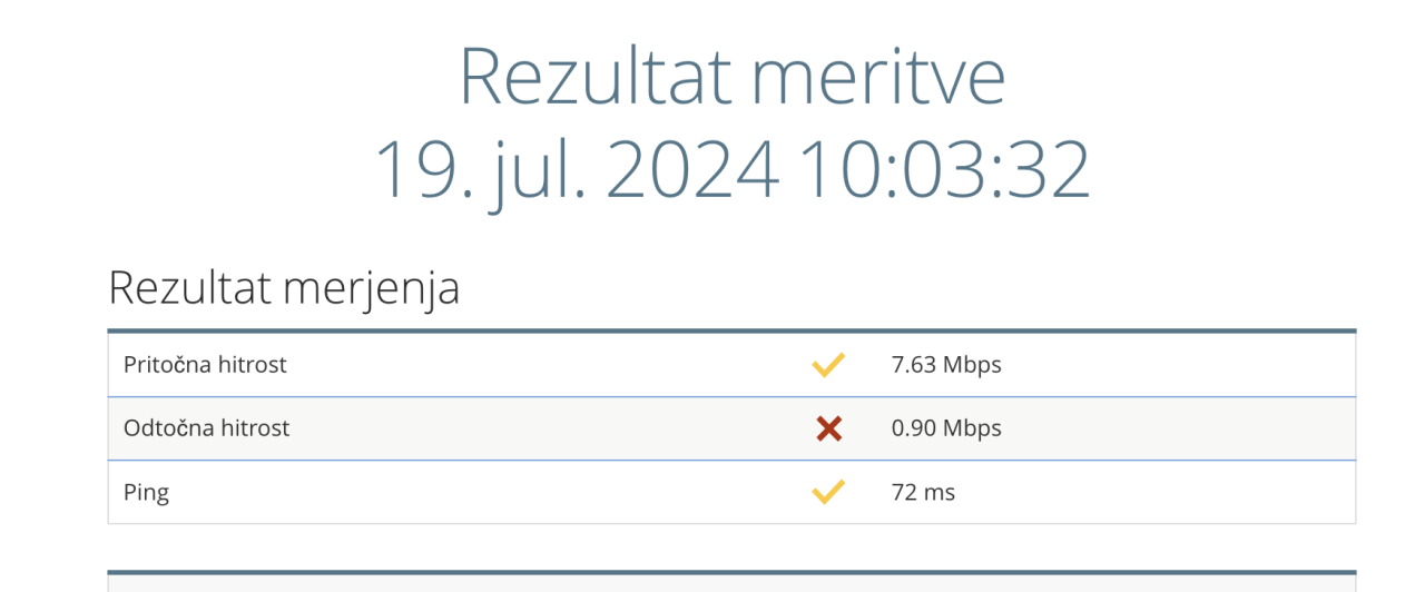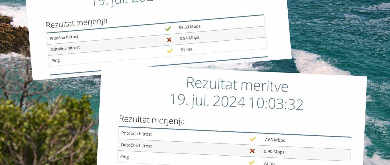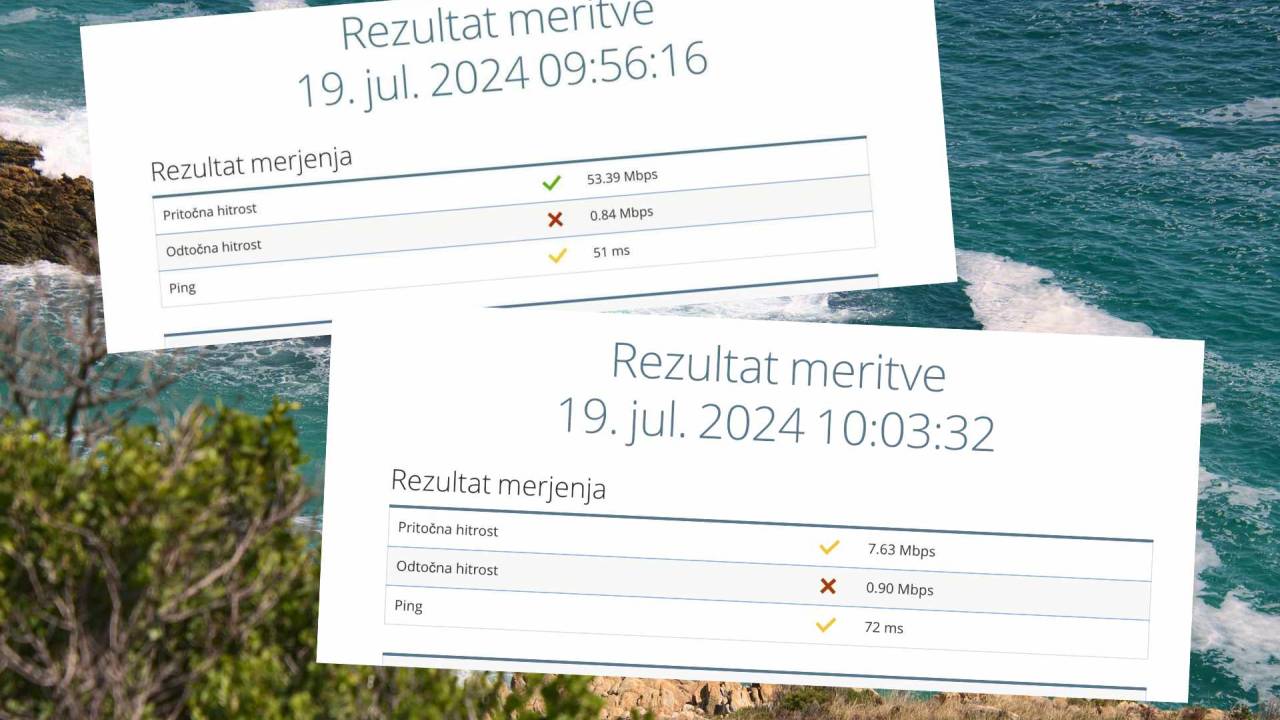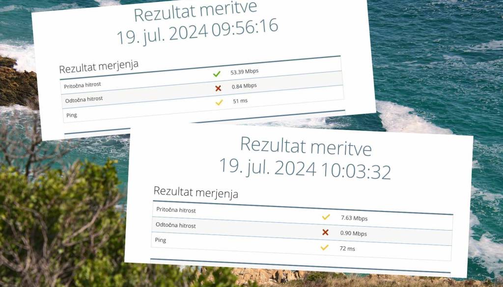 Delovanje spletne povezave smo te dni preizkusili tudi sami. Na otoku Krku, kjer je letos sicer manj turistov, kot v preteklih letih, internetne storitve delujejo slabo. Pri več ponovljenih meritvah nikoli nismo izmerili odzivnosti, nižje od 40 milisekund.