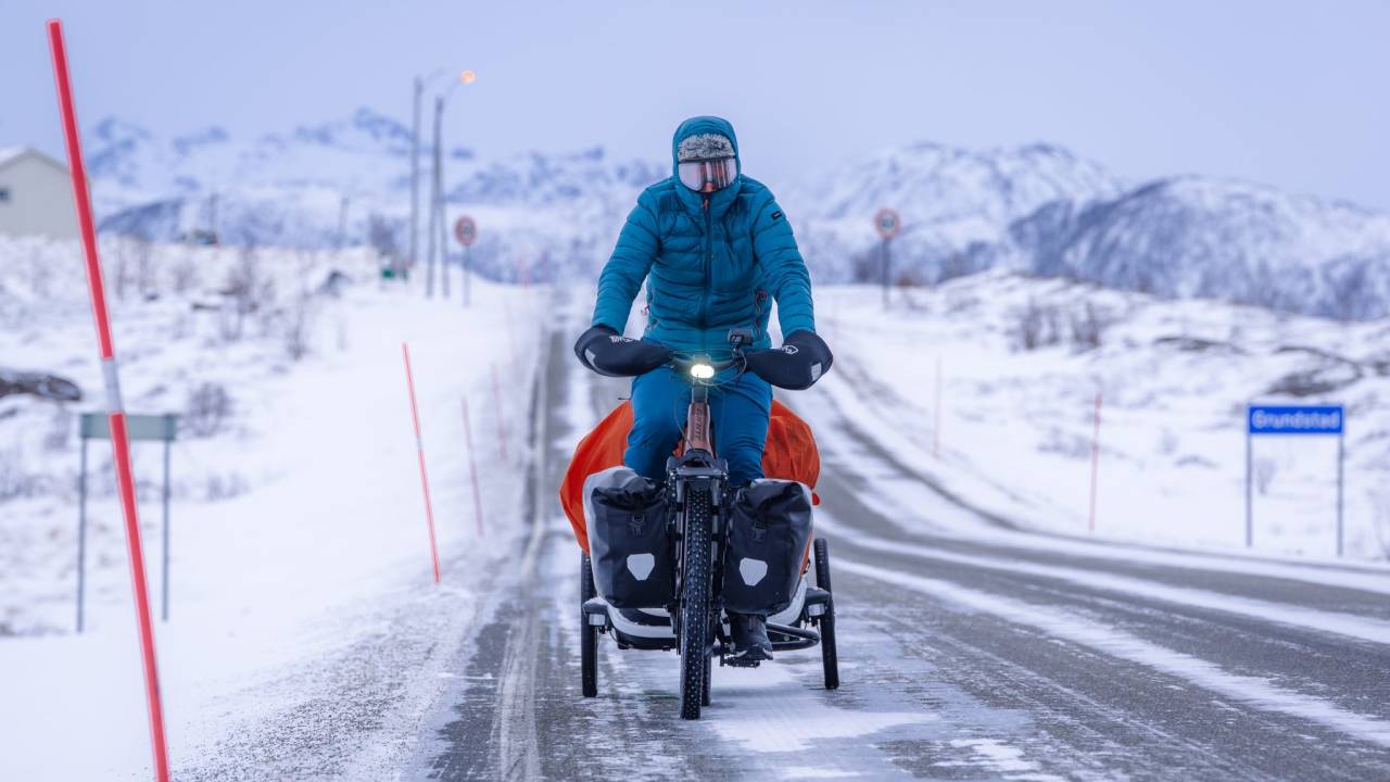 Hrvat Hrvoje Jurić je biciklist, fotograf in potopisec, ki se je z električnim kolesom in s svojima dvema štirinožnima prijateljema Eno in Maxom odpravil na 2300 kilometrov dolgo pot od Osla do Nordkappa