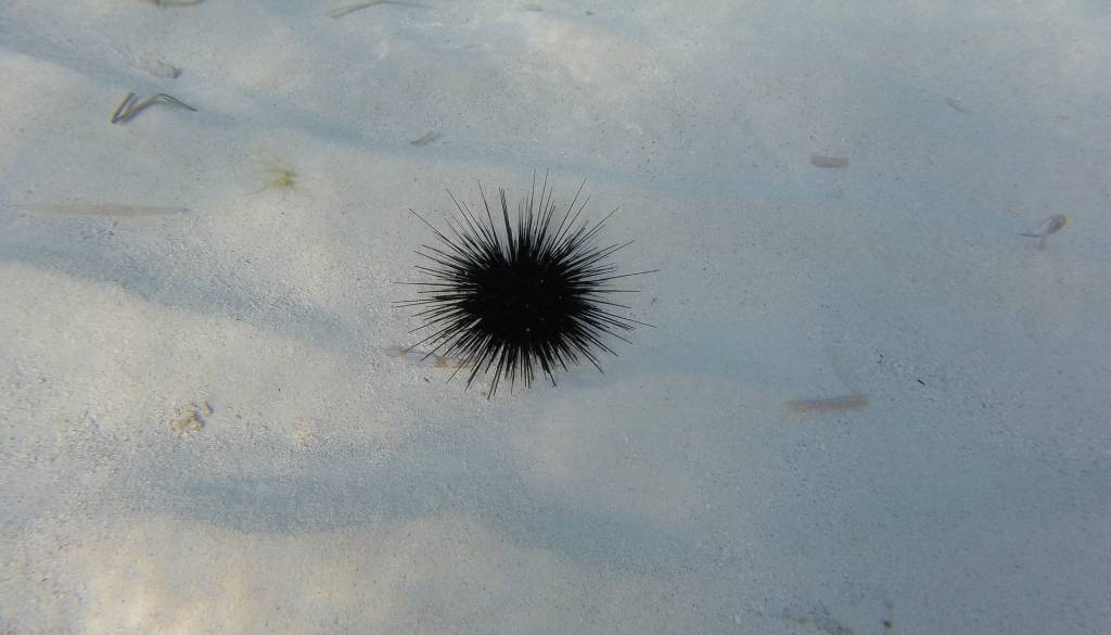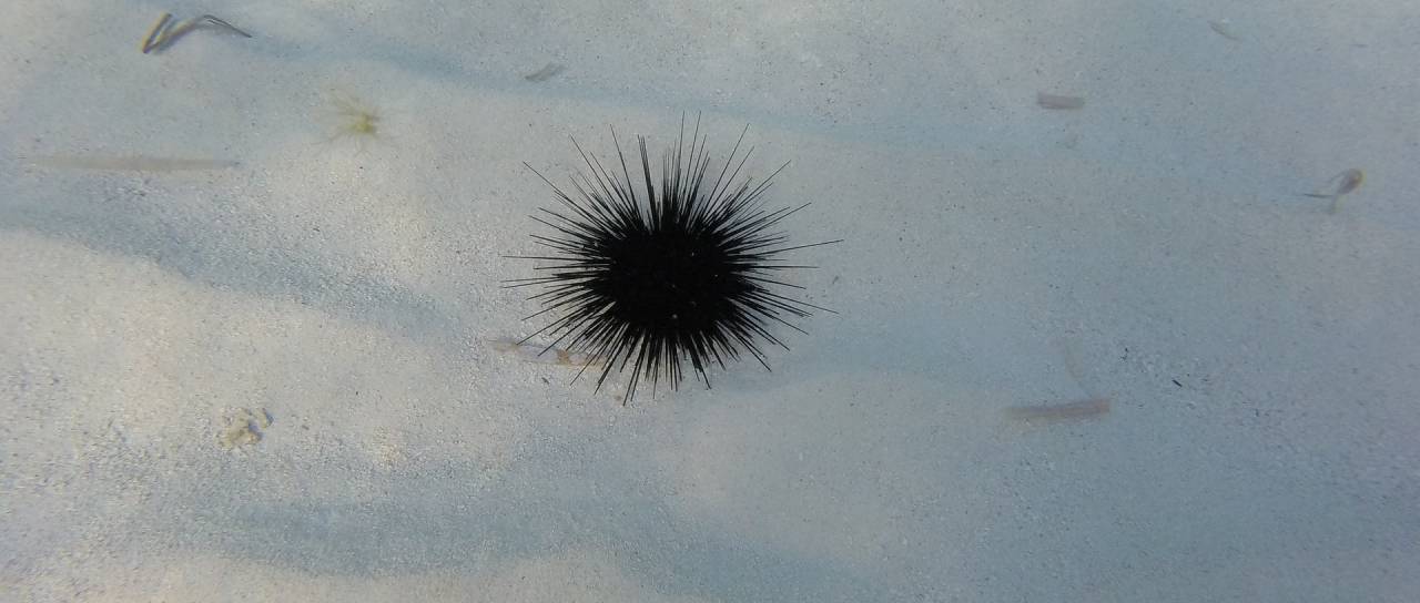 Ko hodite po skalnatem ali peščenem morskem dnu, nosite čevlje z debelim podplatom, da se zaščitite pred nenamernim stopanjem na ježke.
