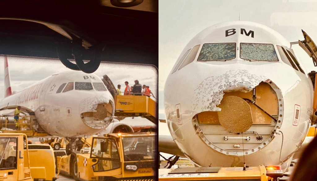 Letalo je na svoji poti iz Maroka na Dunaj poletelo direktno skozi supercelično nevihto, škoda pa je vidna na fotografijah.